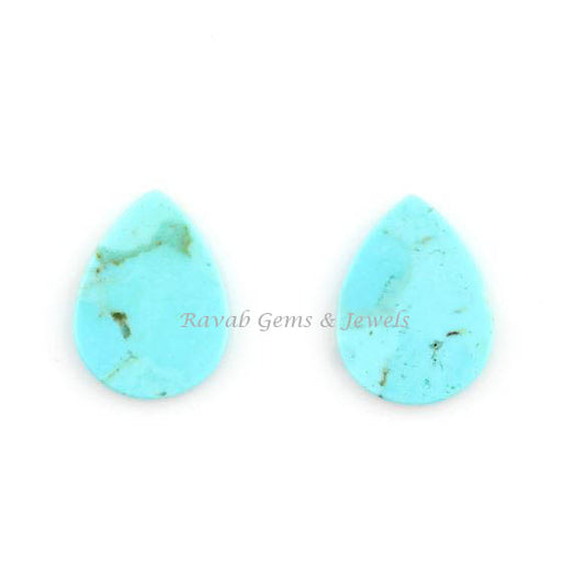 Natural Arizona Turquoise Pear Shape 12x16mm Both Side Flat Gemstone For Jewelry, Loose Beads Calibrated Stone For Jewelry Earring 2 Pcs Set