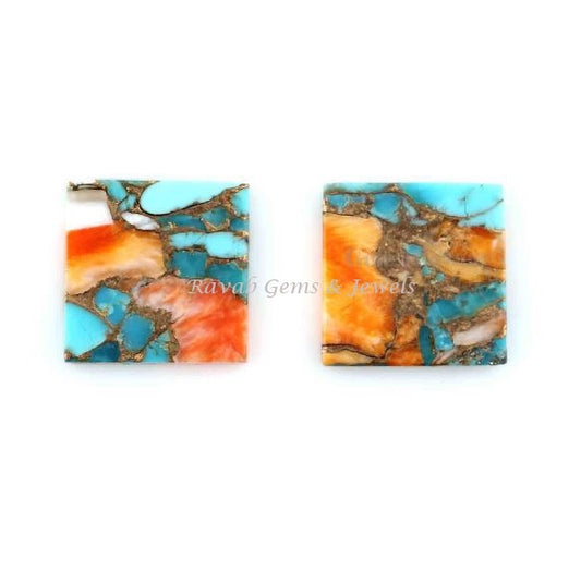 Mohave Copper Oyster Turquoise Square Smooth Flat Gemstone, Calibrated Loose Beads Semi Precious Stone For Jewelry Earring Making 2 Pcs Set