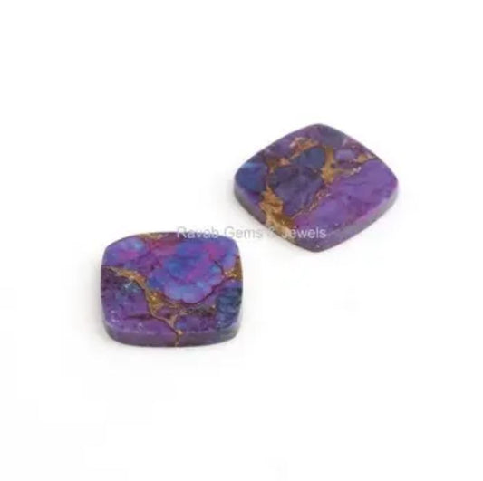 Mohave Purple Copper Turquoise Cushion Shape Both Side Flat Gemstone, Calibrated Stones, Loose Beads Stone For Jewelry Making 12mm 2 Pcs Set