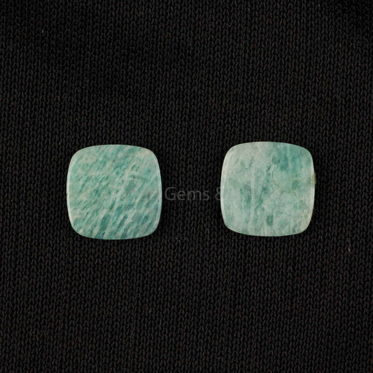 Natural Amazonite Cushion Shape 12mm Both Side Flat Gemstone, Calibrated Stones, Matching pair Stone For Jewelry Making 2 Pcs Set