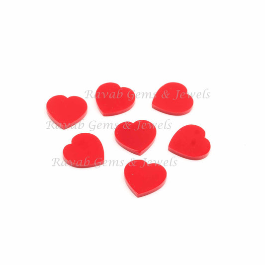 Love Gifted Red Coral Heart Shape Flat Gemstone DIY Jewelry Making Pendant, Earrings Semi Precious Loose Stones For Women's 12mm 2 pc Set
