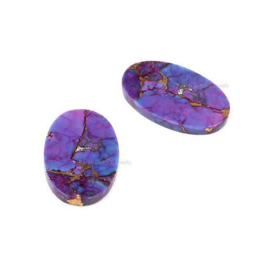 Mohave Purple Copper Oval shape 12x19mm Flat Gemstone For Jewelry, Mohave Copper pendant, earring making beads 2 pc set