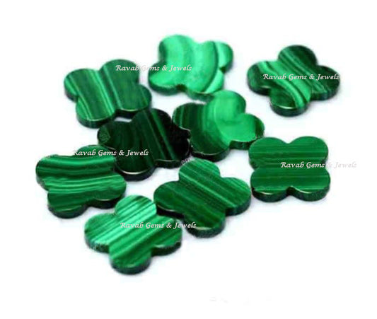 Malachite, Clover Both Side Flat, Loose Gemstone, Four Leaf, Wholesale Supplier, Semi Precious Stone, For Making Jewelry, All Size Available