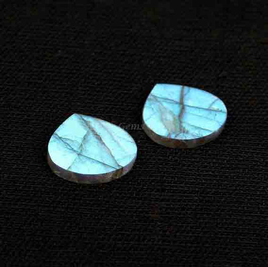 Natural Labradorite Square Shape Gemstone For Jewelry, Blue Fire Labradorite For Earring Pendant Making, Flat Pair Stones 12mm 2 Pcs Set
