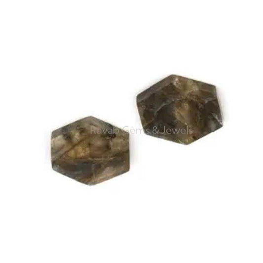 Natural Labradorite Hexagon Shape Flat Gemstone, Loose Beads Stones For Pendant Earring Making 12mm 2 Pcs Set, Bridemaid Jewlery Making Gift