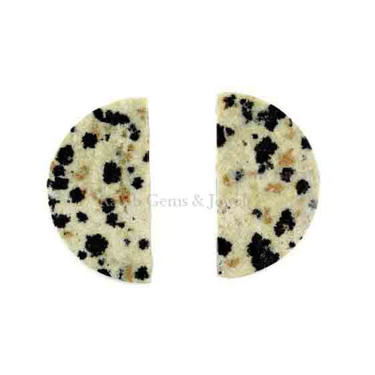 Natural Dalmatian Jasper Half-Moon D Shape Flat Gemstones, Loose Beads Calibrated Stones For Jewelry Earring Making 2 Pcs Set All Sizes