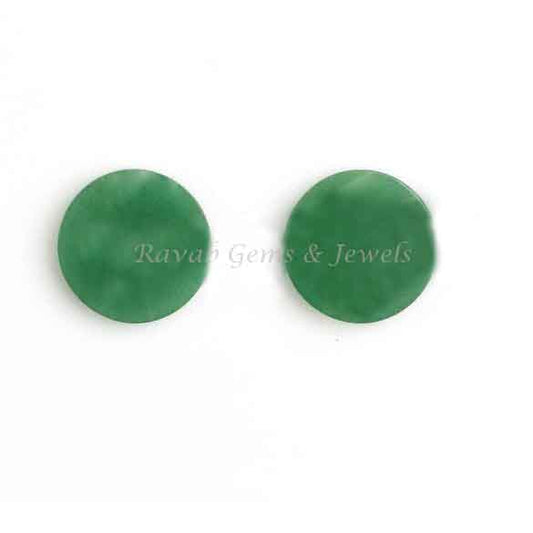Natural Green Agate Round Coin Shape 12mm Flat Gemstone, Calibrated Stone For Jewelry Making, Lovely Stone For Earrings 2 Pcs Set