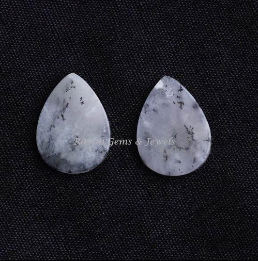 Natural Dendritic Agate Pear Shape Smooth Flat Gemstone, Loose Beads Calibrated Stone For Jewelry Earring Ring Pendant Making 12x16mm 2 Pcs