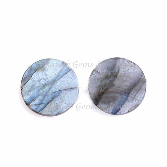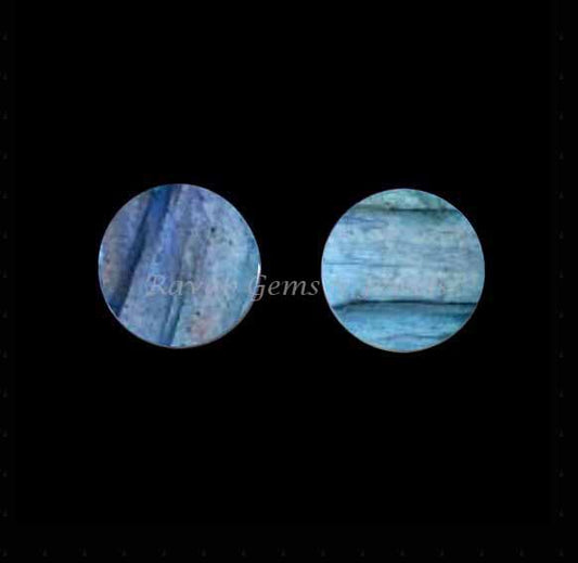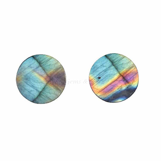 Natural Labradorite Round Coin Shape 12mm Flat Gemstone For Jewelry Making, Loose Beads Calibrated Stone ForJewelry Making 2 Pcs Set Lot