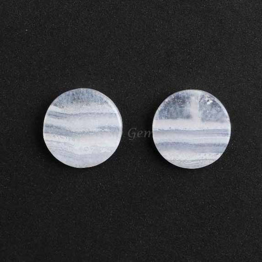 Natural Blue Lace Agate Round Coin Shape 12mm Flat Gemstone for Jewelry Making, Loose Beads Calibrated Stone For Earrings 2 Pcs Set