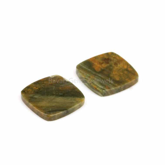 Natural Green Rhyolite Cushion Shape Calibrated Gemstone, Loose Beads For Jewelry Making, Semi Precious Stone By GemsBazaarIndia 2 Pcs Set