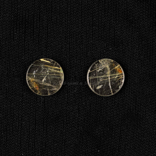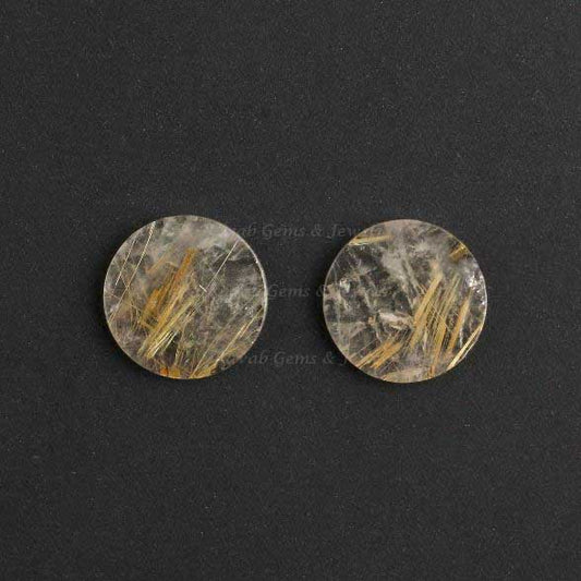 Natural Golden Rutile Round Coin Shape 12mm Flat Gemstone For Customised Jewelry, Loose Beads Calibrated Stone For Jewelry 2 Pcs Set