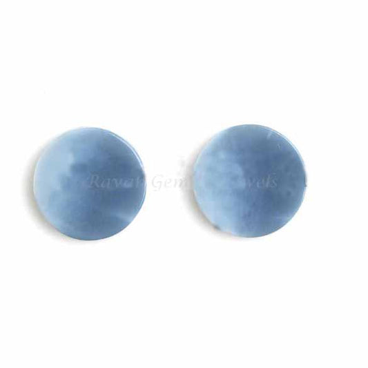 Natural Blue Opal Round Coin Flat Gemstone, Loose Beads Calibrated Stone For Jewelry Ring Earring Pendant Making 12mm 2 Pcs All Sizes