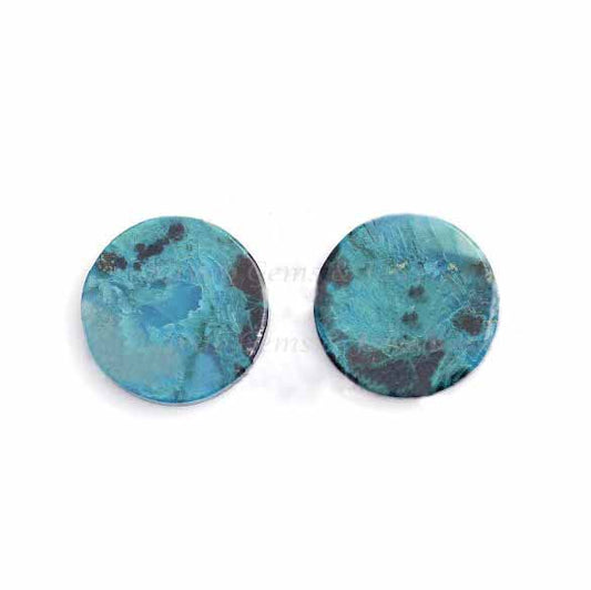 Natural Chrysocolla Round 12mm Flat Gemstone pair, Natural Chrysocolla pendant - Chrysocolla loose gemstone wholesale 2 pcs set