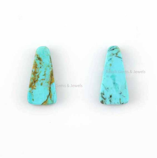 Natural Arizona Turquoise Trapezoid Shape 8x16mm Smooth Flat Gemstone, Loose Beads Calibrated Stone For Jewelry Making 2 Pcs Set Available