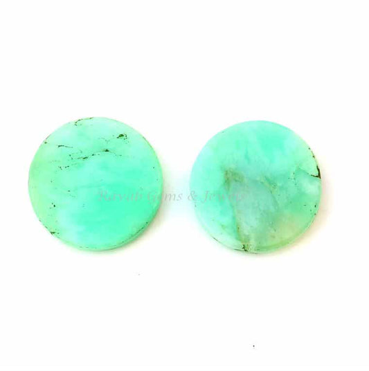 Natural Chrysoprase Round Coin shape 12mm Flat Gemstone for jewelry making, Natural Chrysoprase pendant, earrings making beads 2 pcs set,