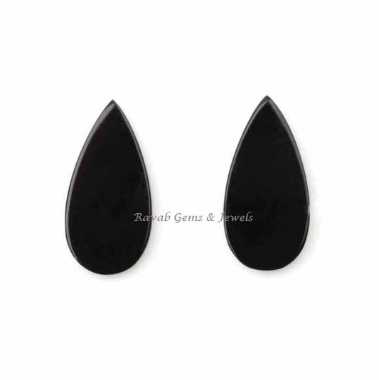 Natural Black Onyx Long Pear Shape Smooth Flat Gemstone For Jewelry, Loose Beads Calibrated Stone For Jewelry Making 2 Pcs Set All Sizes