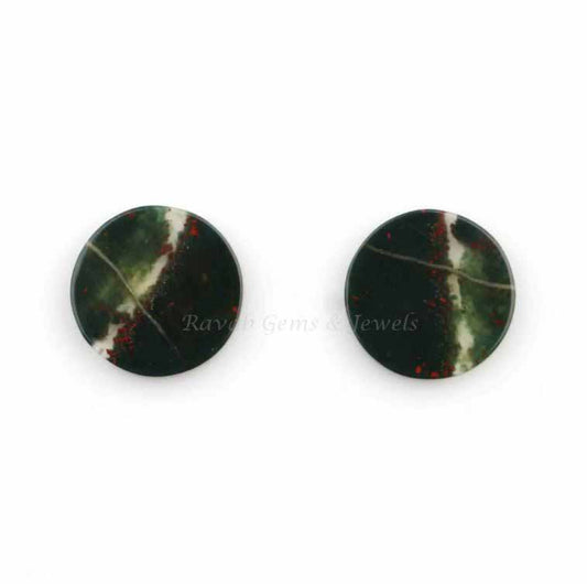 Natural Blood Stone Round Coin Disc Shape Flat Gemstone, Loose Beads Calibrated Stone For Jewelry Ring Earring Pendant 12mm 2 Pcs Set