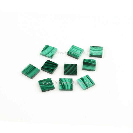 Natural Green Malachite Square Flat Gemstone for Jewelry, Loose Beads Stone For Jewelry Making Stone 12mm 5 Pcs Set, All Sizes Available