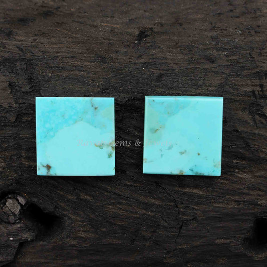 Natural Arizona Turquoise Square shape 12mm Flat Gemstone, Arizona Turquoise ring, pendant, earrings, jewelry making beads 2 pc set
