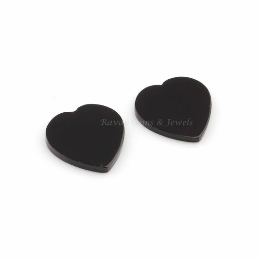 Natural Black Onyx Heart Shape Flat Smooth Gemstone For Jewelry, Black Onyx Stone For Jewelry Ring Earring Making Stone 2 Pcs Set All Sizes