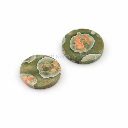Natural Green Rhyolite Round Coin shape 12mm Both Side Flat Gemstone calibrated, Green Rhyolite Calibrated for jewelry 2 pcs set