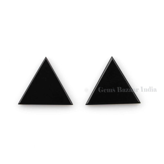 Natural Black Onyx Triangle Shape Smooth Flat Gemstone For Jewelry, Loose Beads Calibrated Semi Precious Stone For Jewelry Making 2 Pcs Set