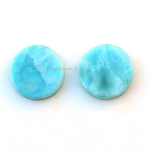 Natural Larimar Coin shape 12mm Flat Gemstone Calibrated, Sky Blue Natural Larimar loose gemstone 2 pcs set