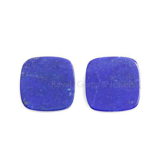 Natural Lapis Lazuli Cushion Shape Smooth Flat Gemstone, Loose Beads Calibrated Semi Precious Stone, Jewelry Ring Earring Making 2 Pcs Set