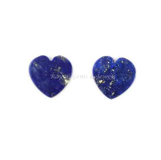 Natural Lapis Lazuli Heart Cut 12mm Flat Gemstone For Jewelry Making, Best Quality Loose Beads Stone Fancy Matching Jewelry Making 2 Pcs Set