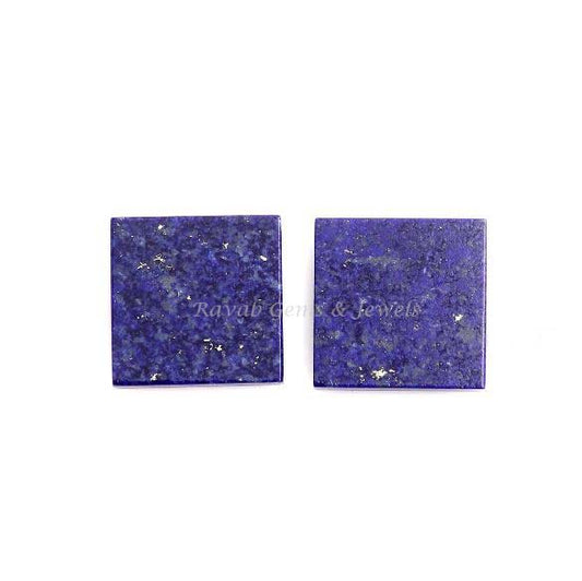 Natural Lapis Lazuli Square Shape Both Side Flat Gemstone, Calibrated Loose Beads For Jewelry Earring Making 2 Pcs Set By GemsBazaarIndia