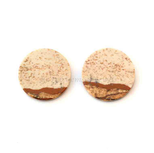 Natural Picture Jasper Round Coin shape 12mm Flat Gemstone for jewelry making, Picture Jasper pendant, earrings making beads 2 pcs set