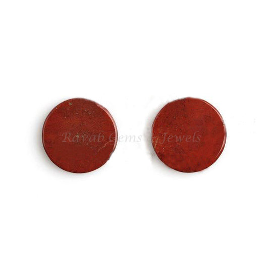 Natural Red Jasper Round Coin Shape 12mm Flat Gemstone for Jewelry Making, Earrings Making Stones, Flat Pair Stone For Sale 2 Pcs Set
