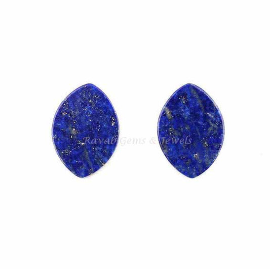 Natural Lapis Lazuli Marquise Shape 10x14mm Flat Smooth Gemstone, Loose Beads Calibrated Stone For Jewelry Making 2 Pcs All Size Available