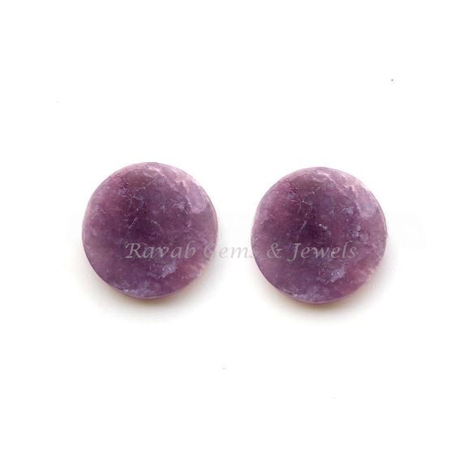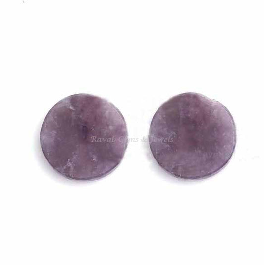 Natural Lepidolite Round Coin Shape Flat Gemstone For Jewelry, Loose Beads Calibrated Semi Precious Stone 2 Pcs Set, All Sizes Available