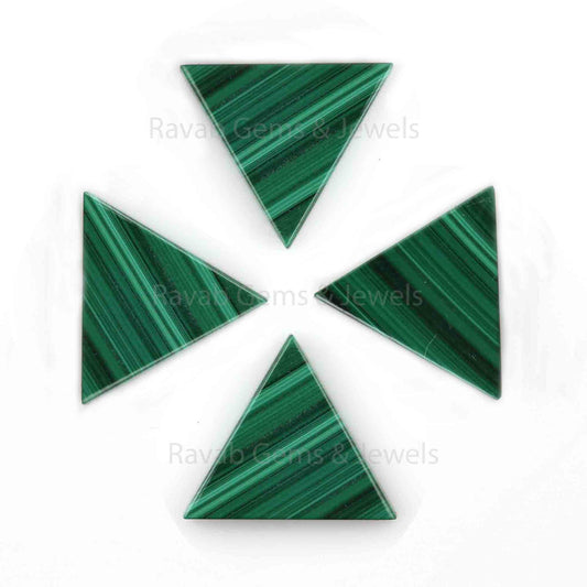Natural Malachite Triangle Shape Both Side Flat Gemstone For Jewelry Making, Loose Beads Calibrated Semi Precious Stone 2 Pcs Set All Sizes