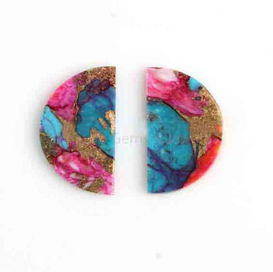Purple & Orange Dahlia Copper Turquoise 'D' Half Moon Shape Flat Gemstone For Jewelry, Loose Beads Calibrated Stone For Earrings 2 Pcs Set