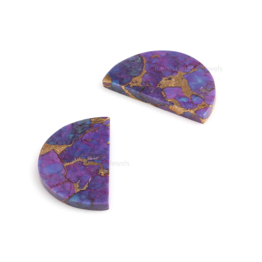 Purple Copper Turquoise 'D' Half Moon Shape Flat Gemstone For Jewelry, Loose Beads Calibrated Stone For Matching Earring Making Stones 2 Pcs
