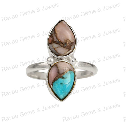 Best Selling Genuine Pink Copper Turquoise Pear Shape 7x9mm Solid 925 Sterling Silver Bezel Setting Women Handmade Ring