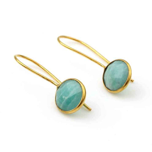 Best Selling High-Polished Gold Plated Sterling Silver Dangle Drop Earrings Amazonite Gemstone Stylish Fine Dangle Hoop Jewelry