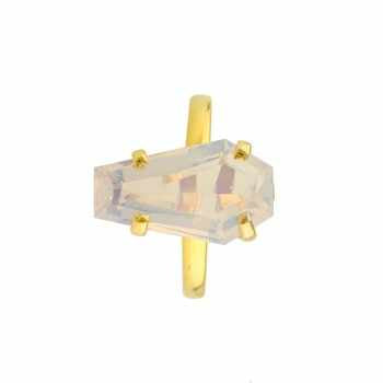 Best Selling Dainty Minimalist Sterling Silver Coffin Rings Rainbow Opalite Hydro Quartz Gemstone Prong Setting Women's Fine