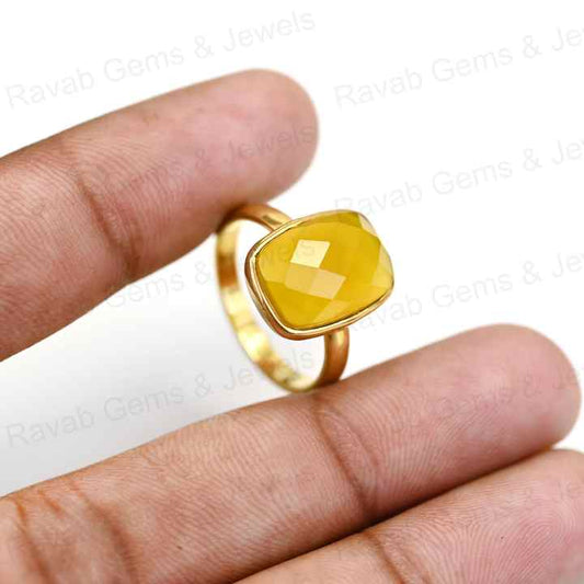 Best Selling Handmade 925 Silver Bezel Vermeil Eternity 12x16mm Yellow Chalcedony Rectangle Cushion Faceted Ring Fine Jewelry