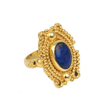 Best Selling Designer Boho Oval Shape Ring Women 10x14mm Lapis Lazuli Gemstone Bezel 18k Gold Plated Sterling Silver Fine