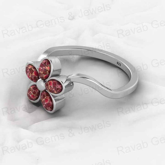 Best Selling Genuine Pink Dahlia Spiny Oyster Copper Turquoise Gemstone 18k Gold Filled Sterling Silver Cushion Ring for Women