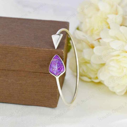 Best Selling Mohave Purple Copper Turquoise 925 Silver Bezel Shield Adjustable Arrow Shape Designer Bangle Fine Native Jewelry