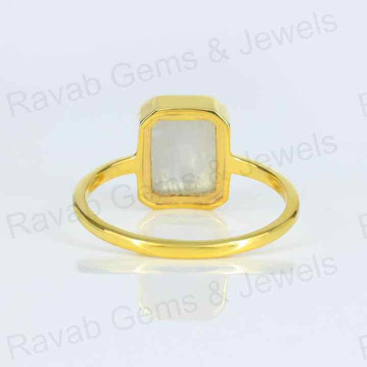 Best Selling Handmade 925 Silver Natural 8x10mm Rainbow Moonstone Gold Vermeil Eternity Fine Jewelry Bezel Set Ring for Women
