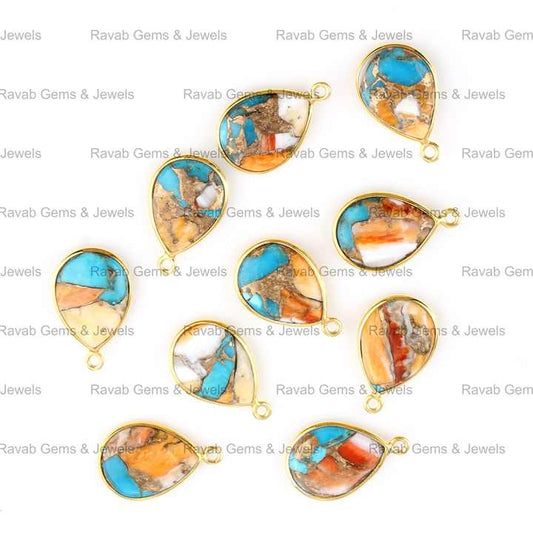 Best Selling Mohave Spiny Oyster Copper Turquoise Gemstone 12x16mm Pear Charms Pendant for Earring Bracelet Necklace DIY Making