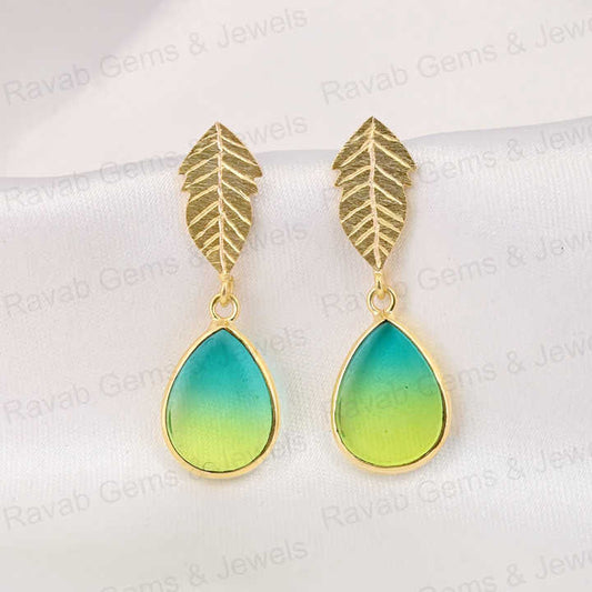Best Selling Handmade 925 Sterling Silver Dangle Earrings Trending Aqua Chalcedony Pear Shape Gemstone Gold Plated Fine Dangle
