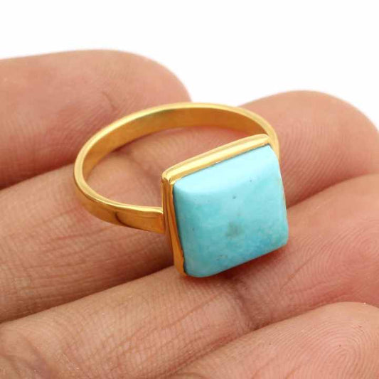 Best Selling Fine Jewelry Natural 12mm Square Kingman Arizona Turquoise Gemstone 925 Silver Gold Vermeil Eternity Dainty Ring