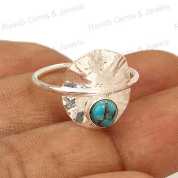 Best Selling Handmade 8mm Sterling Silver Ring With Arizona Turquoise Gemstone Bezel Collet Setting High Quality Women's Jewelry
